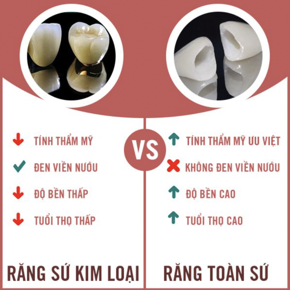 Phân biệt giữa răng sứ kim loại và răng toàn sứ